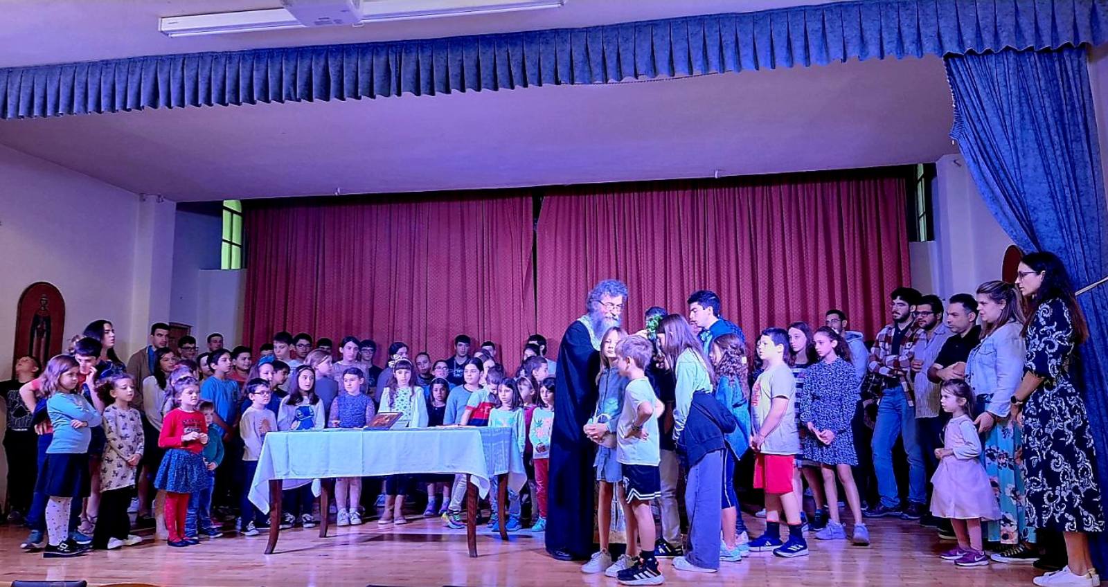 Η νέα κατηχητική χρονιά ξεκίνησε πανηγυρικά την Κυριακή 12 Οκτωβρίου 2025, στο Πνευματικό Κέντρο του Ιερού Ναού μας. Η εκδήλωση άνοιξε με την τέλεση του Αγιασμού από τον π. Θεόδωρο, ο οποίος ευλόγησε τα παιδιά, τους γονείς και τους κατηχητές, ευχόμενος μια καρποφόρα και χαρούμενη χρονιά.