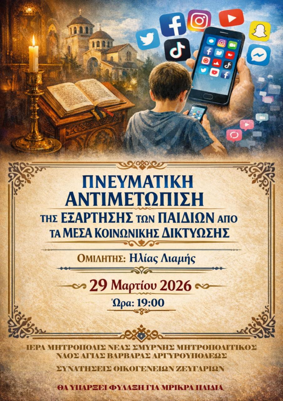 Σε μια εποχή όπου τα μέσα κοινωνικής δικτύωσης επηρεάζουν έντονα την καθημερινότητα των παιδιών και των νέων, η ομιλία αυτή έρχεται να δώσει πνευματικό προβληματισμό, κατευθύνσεις και ουσιαστική βοήθεια σε γονείς και νέους.
